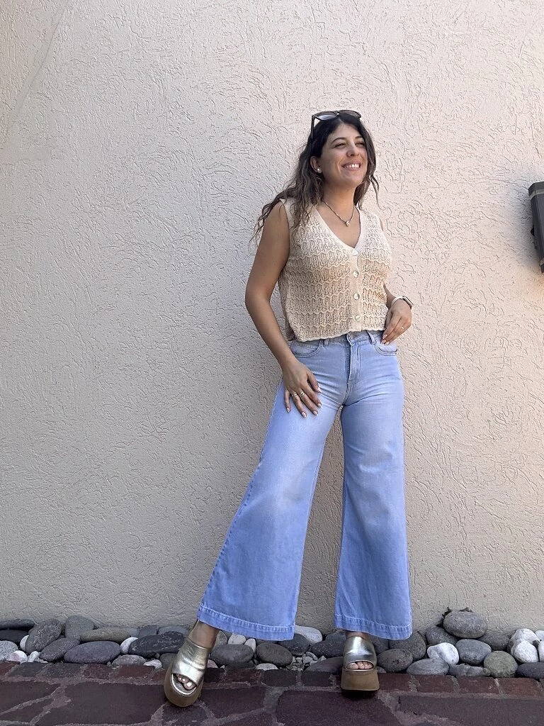 Descubrí el Jean Alanis, la prenda imprescindible para un look sofisticado y cómodo. Este pantalón combina la estructura firme del denim rígido con la fluidez y amplitud característica del corte palazzo, ideal para quienes buscan destacar con estilo sin perder comodidad.