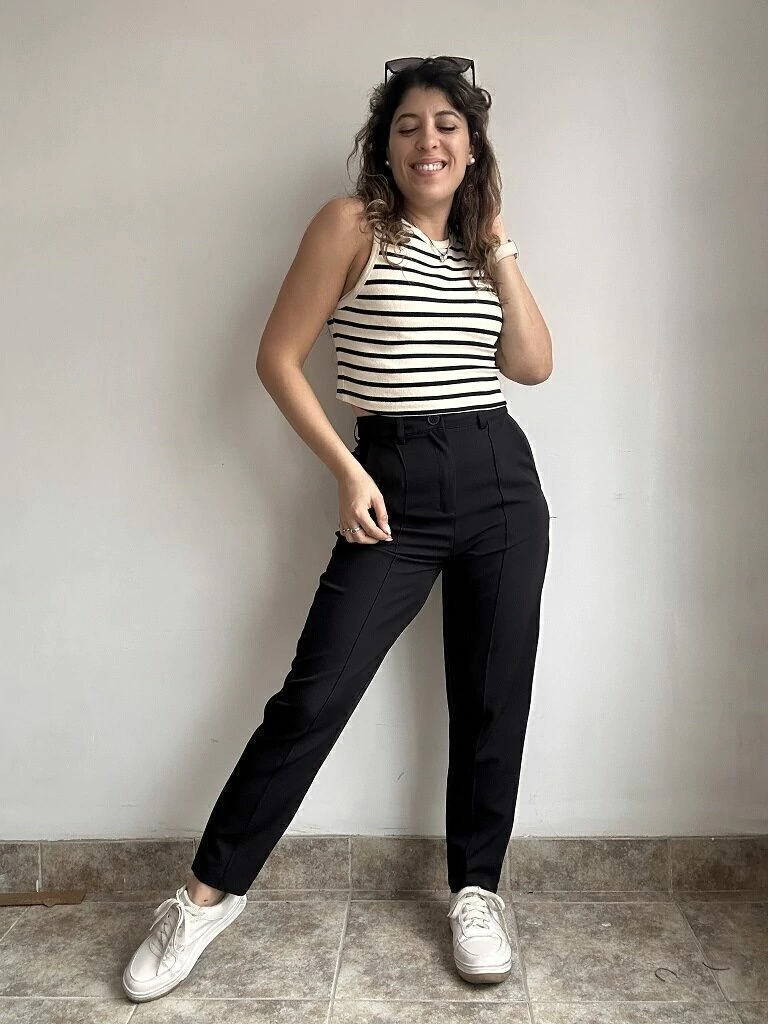 Descubrí el Pantalón Miky, un clásico de corte recto que no puede faltar en tu guardarropa. Disponible exclusivamente en negro y en talles del 1 al 6, combina elegancia y comodidad para cualquier ocasión formal o de trabajo. Su diseño sobrio y atemporal te asegura un look impecable al mejor precio del mercado. ¿Querés asesoramiento sobre talles? ¡Contactanos por WhatsApp!